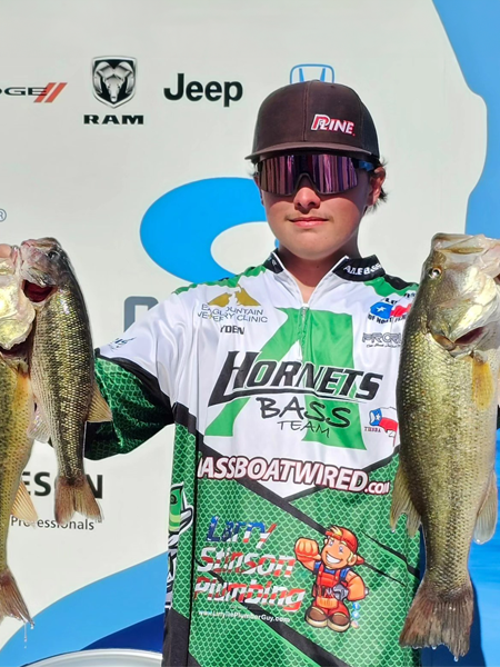 Jayden Potter, a young angler from the Azle Hornets Bass Team, is passionate about bass fishing. Alongside competing with his school, Jayden enjoys working on his boat and the excitement of hunting, showcasing a well-rounded dedication to the outdoors and adventure.
