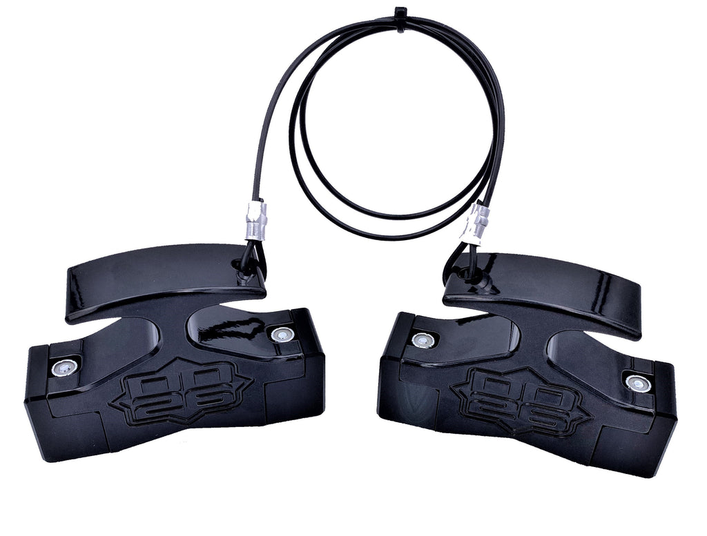 Our DD26 Mean Stops lock your hydraulic steering when trailering. DD26 Fishing has redefined the game when it comes to quality and performance of your Steer Block Stops. The Steer Stop reduces movement for outboards equipped with hydraulic steering when trailering. Units clip onto hydraulic steering rams on both sides of outboard to keep engine straight and prevent damage to motor supports.
