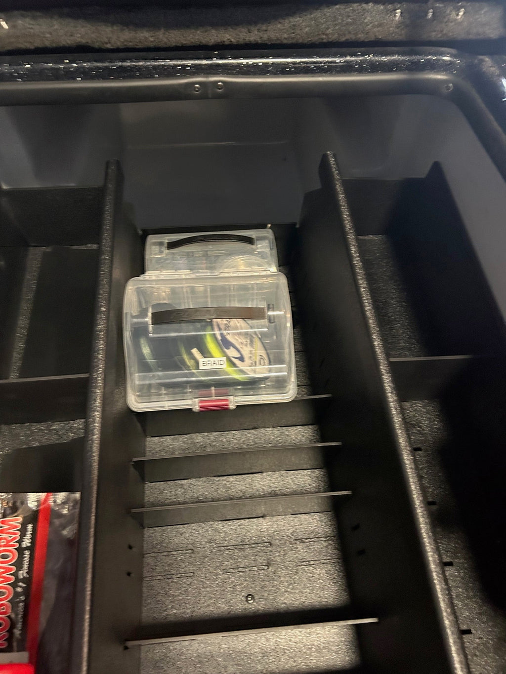 The Champion 210 Elite will charge forward with this Tackle Management System. This unit will hold 14 standard 3700 style trays or the dividers can be adjusted to accept the deeper 3700 trays. Has 2 side compartments to store soft plastics and the dividers are removable to customize the compartments to meet your needs. This unit locks together to make this a very clean look and install.