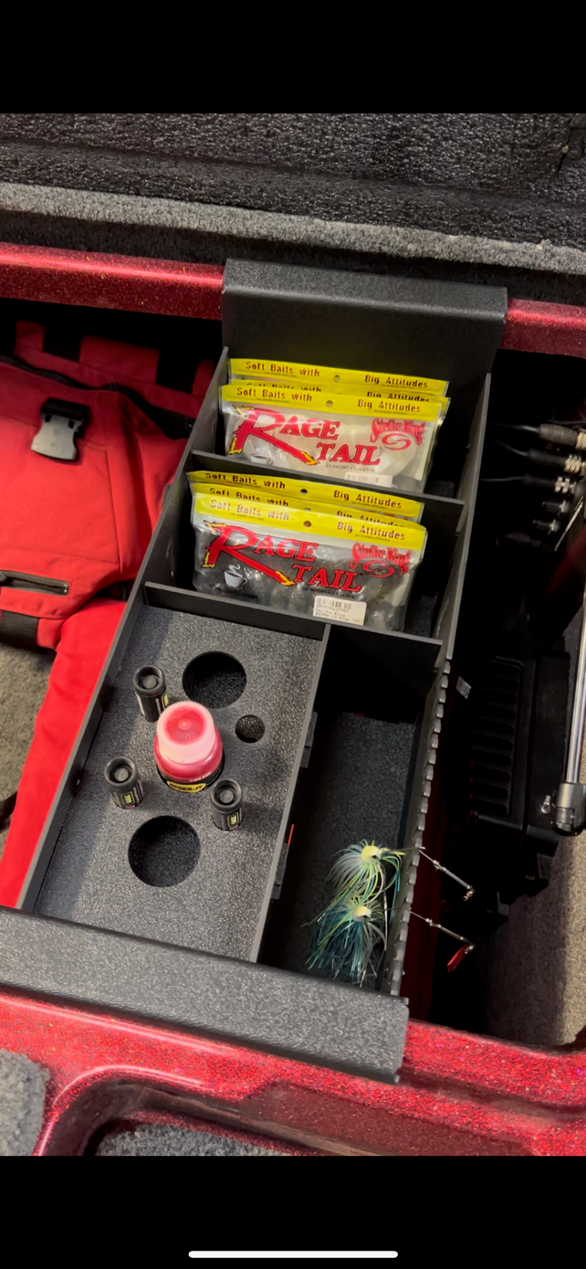 This is a perfect tray to keep your dipping dyes, dye pens and soft plastics handy for a day on the water.