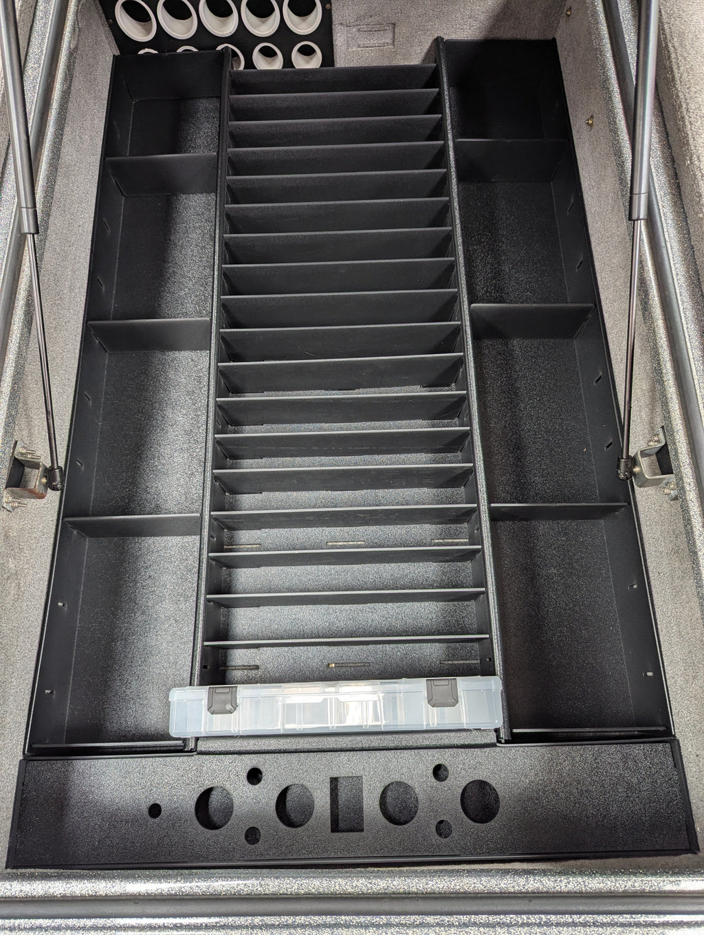 Make your Legend V20 a true legend with this Tackle Management System! Will hold 18 tackle trays and enough soft plastics to make your favorite tackle shop jealous!