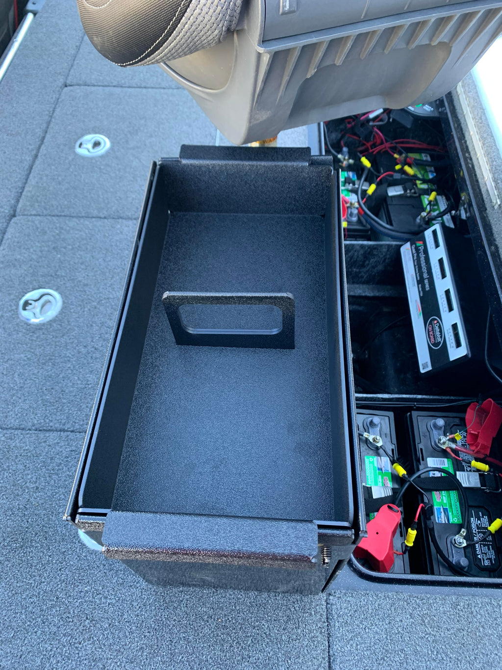 Battery Compartment Tray for 2018-21 Ranger Z521C and 2022 Z185 boats allows you to utilize all available space and store all the things you need for a day on the water. Battery Compartment Trays by AMPD give extra storage in the unused area surrounding your boat's battery.