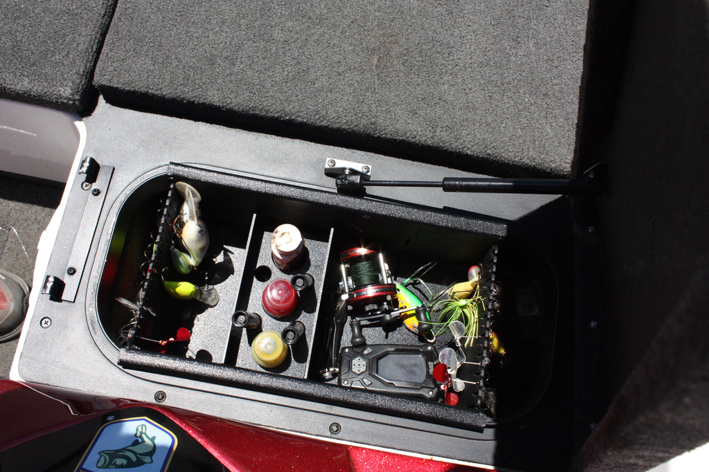 Replacement day tray for most Skeeter models. Check application list for compatibility. This unit holds soft plastics, dyes, paint pens, spinnerbaits and buzzbaits while also doubling as a drying rack. Made from 1/8" ABS plastic so it will not disintegrate like the factory ones.