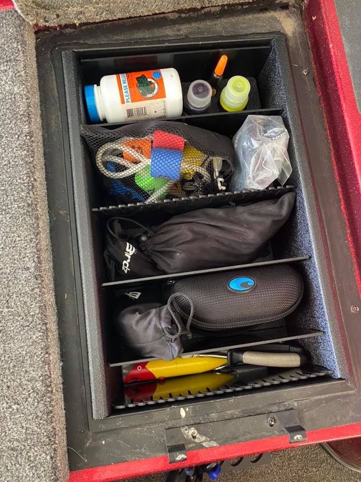 Replacement day tray for Skeeter Boats. This unit holds soft plastics, dyes, paint pens, spinnerbaits, and buzzbaits while also doubling as a drying rack. Made from 1/8" ABS plastic so it will not disintegrate like the factory ones. Fits the rectangle day tray opening that is 14" long and 10 5/8" wide. See pictures for reference.
