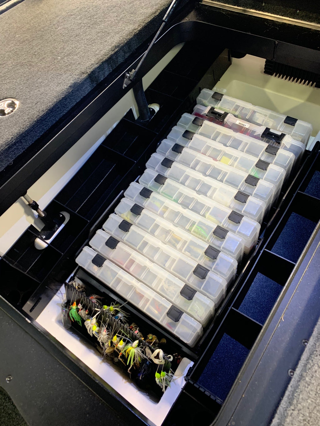 Make your Skeeter work for you with this soft plastics organizer set for the center compartment on any 2024-CURRENT Skeeter FXR20/21.. These side organizers install snug on both sides of the center area allocated for your Plano boxes. Both port and starboard sides included.