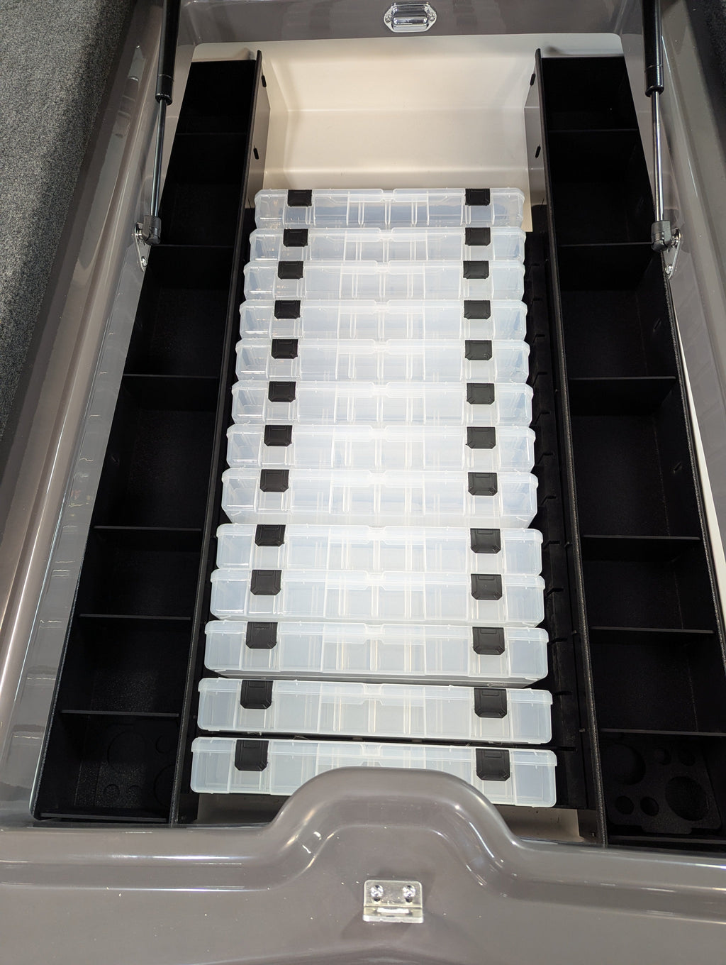 Make your Skeeter work for you with this soft plastics organizer set for the center compartment on the ALL NEW Skeeter ZXE 20/21. These side organizers install snug on both sides of the center area allocated for your Plano boxes. Both port and starboard sides included.