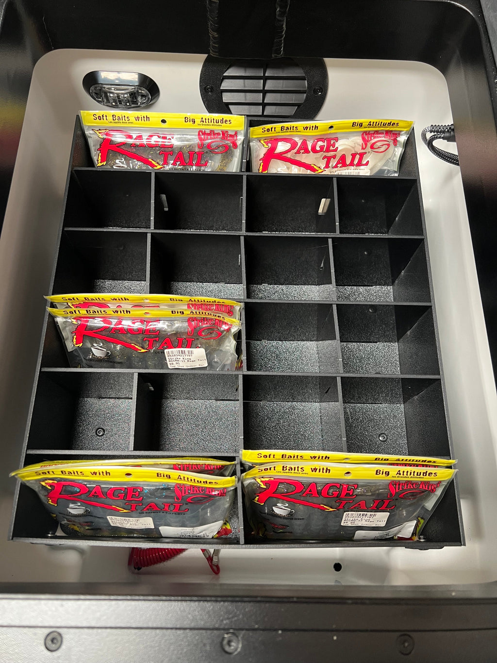 This tray gives you two layers of storage in the rear compartments with removable dividers allowing you to customize it for your needs.